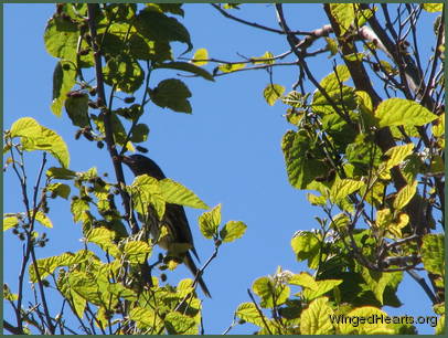 orioleOrioles are seasonal guests, visting our yard at the first sigh of mulberries.   Most of the birds come early in the morning, eat quietly and leave soon after breakfast.  Occasionally a friendlier bird calls out to us in the afternoon and even lets us get some photographs.